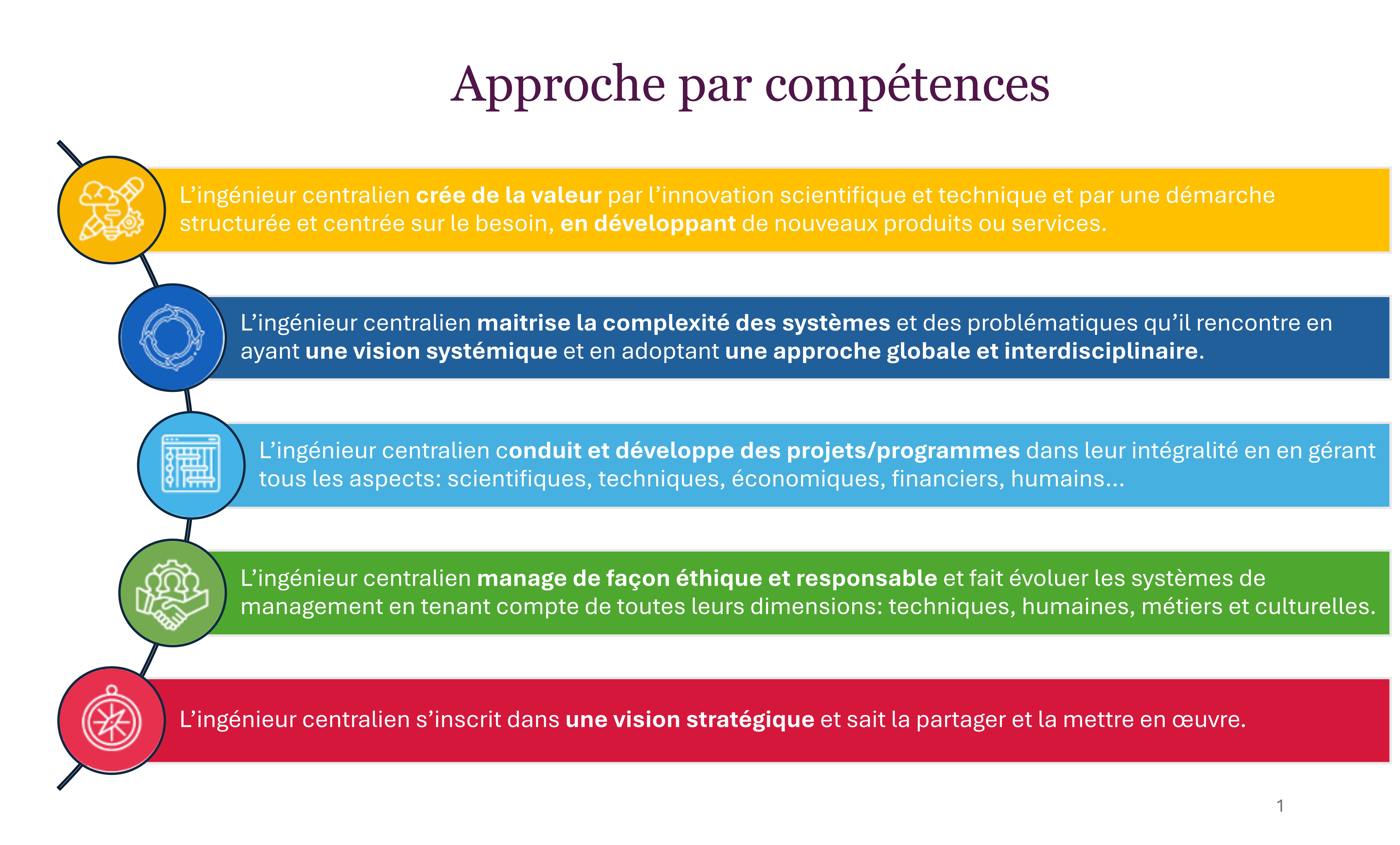 Les 5 macro-compétences développées par l’ingénieur centralien sont les suivantes :
